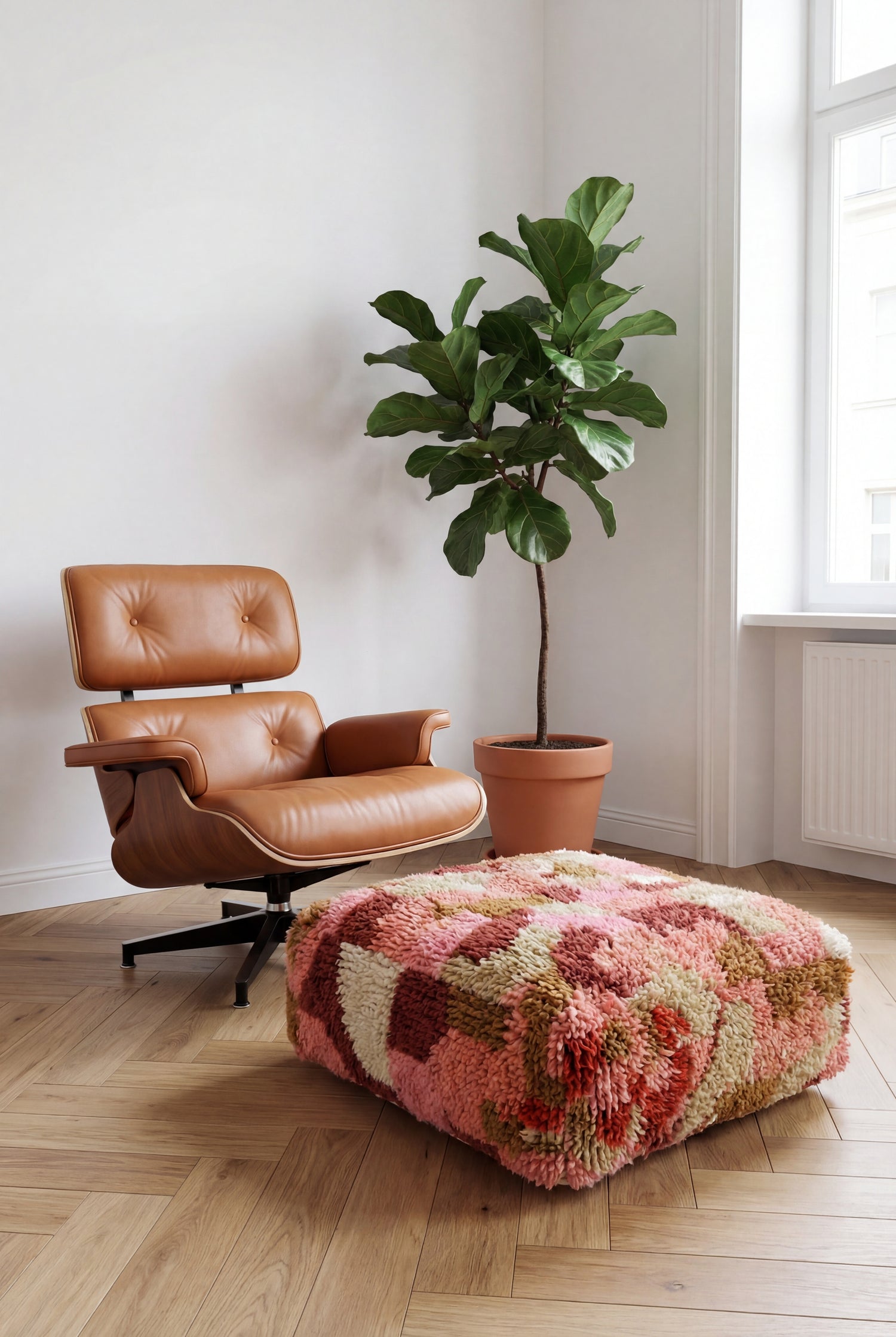 Le format carré du pouf berbère le rend extrêmement adaptable. Voici les placements les plus efficaces :
